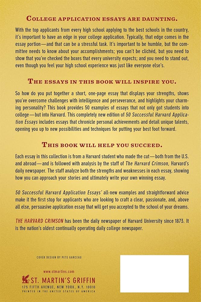 50 Successful Harvard Application Essays, Fourth Edition By Harvard Crimson